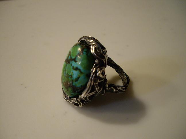 燻して仕上げました。こうするとターコイズが生きてくるでしょ?(^-^)
