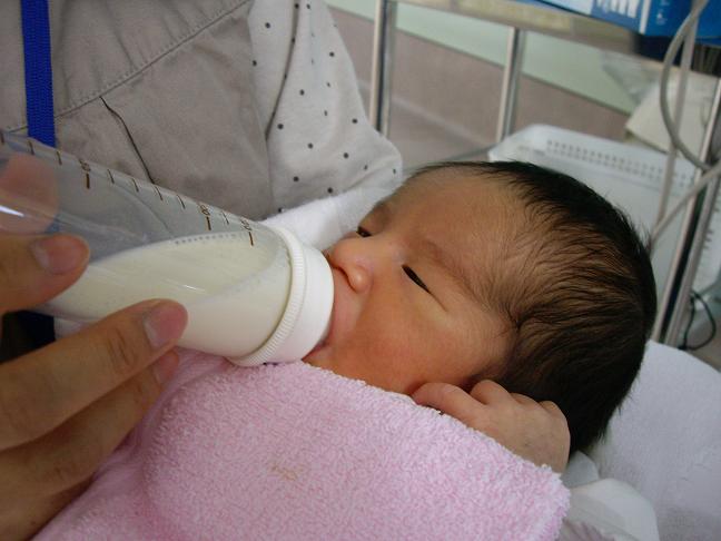 ミルクを一生懸命飲んでます。