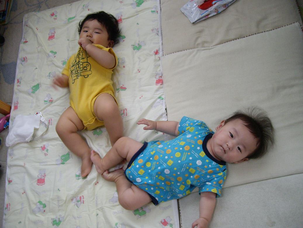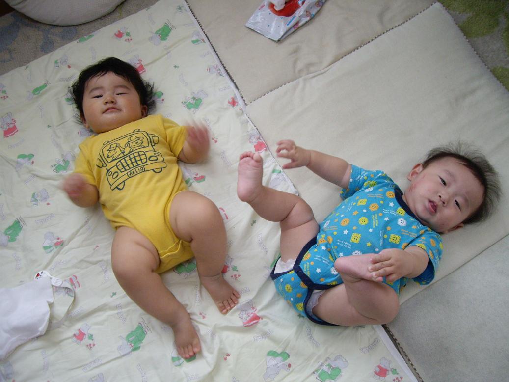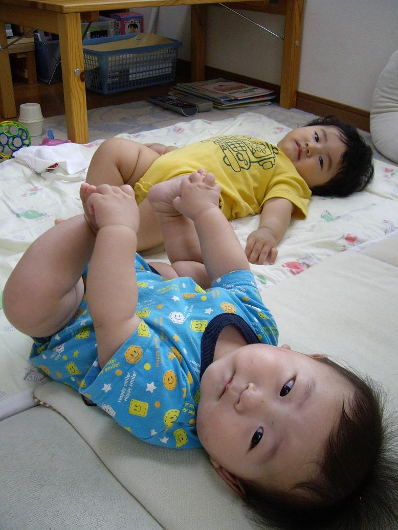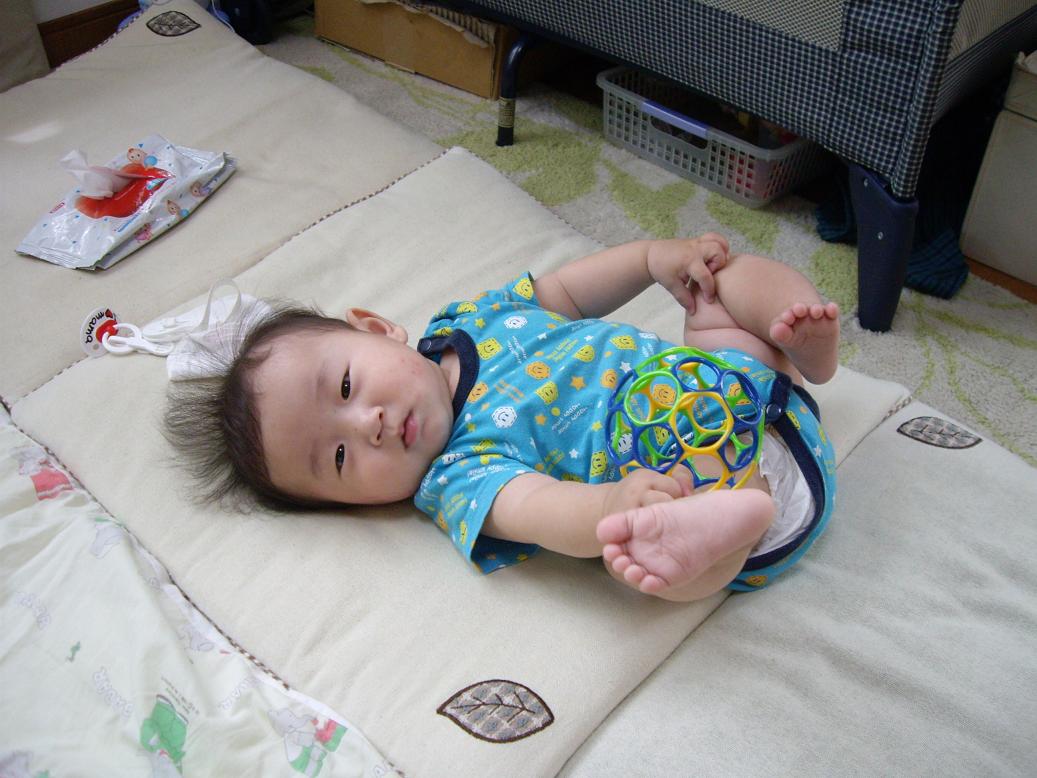 コツを覚えて、寝返りをうちまくる、ぶんちゃん。